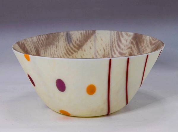Hand cut and shaped. Patterned on both sides of the bowl. The bowl is fired in the kiln no less than three times. It is decorative and functional.